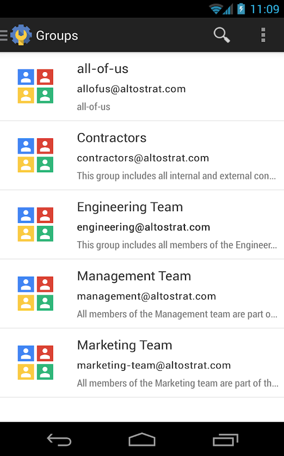 Pokud ve vaší firmě používáte jeden z produktů Google Enterpise (Google Apps for Business, Education, Government) a jste správce, s touto aplikací budete moci ze svého mobilního zařízení přidávat uživatele, mazat/měnit hesla nebo spravovat skupiny.