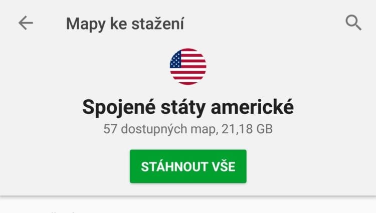 Například u USA se nabízí stažení jednotlivých států, ale pokud chcete celou zemi, musíte si nachystat 21 GB volného prostoru. Co se týče České republiky, můžete si stáhnout jednotlivé regiony. Případně si můžete do mobilu uložit jen Prahu. Další podstatnou novinkou je i plánování v offline módu – bez připojení k internetu.