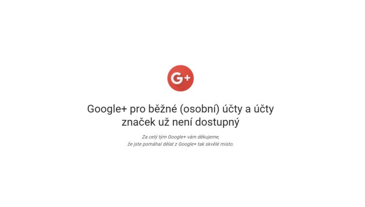 Poslední dny jsou velmi smutné pro příznivce některých služeb společnosti Google. Byla ukončena aplikace a služba Inbox by Gmail, zkracovač URL adres goo.gl již taky nefunguje a dnes jsme se dočkali ukončení sociální sítě Google+. Webová stránka již není v provozu a jen oznamuje konec, mobilní aplikace se ještě může tvářit, že funguje, ale všechny dny jsou sečteny. Na oficiální stránce najdeme jen informativní text od Googlu: