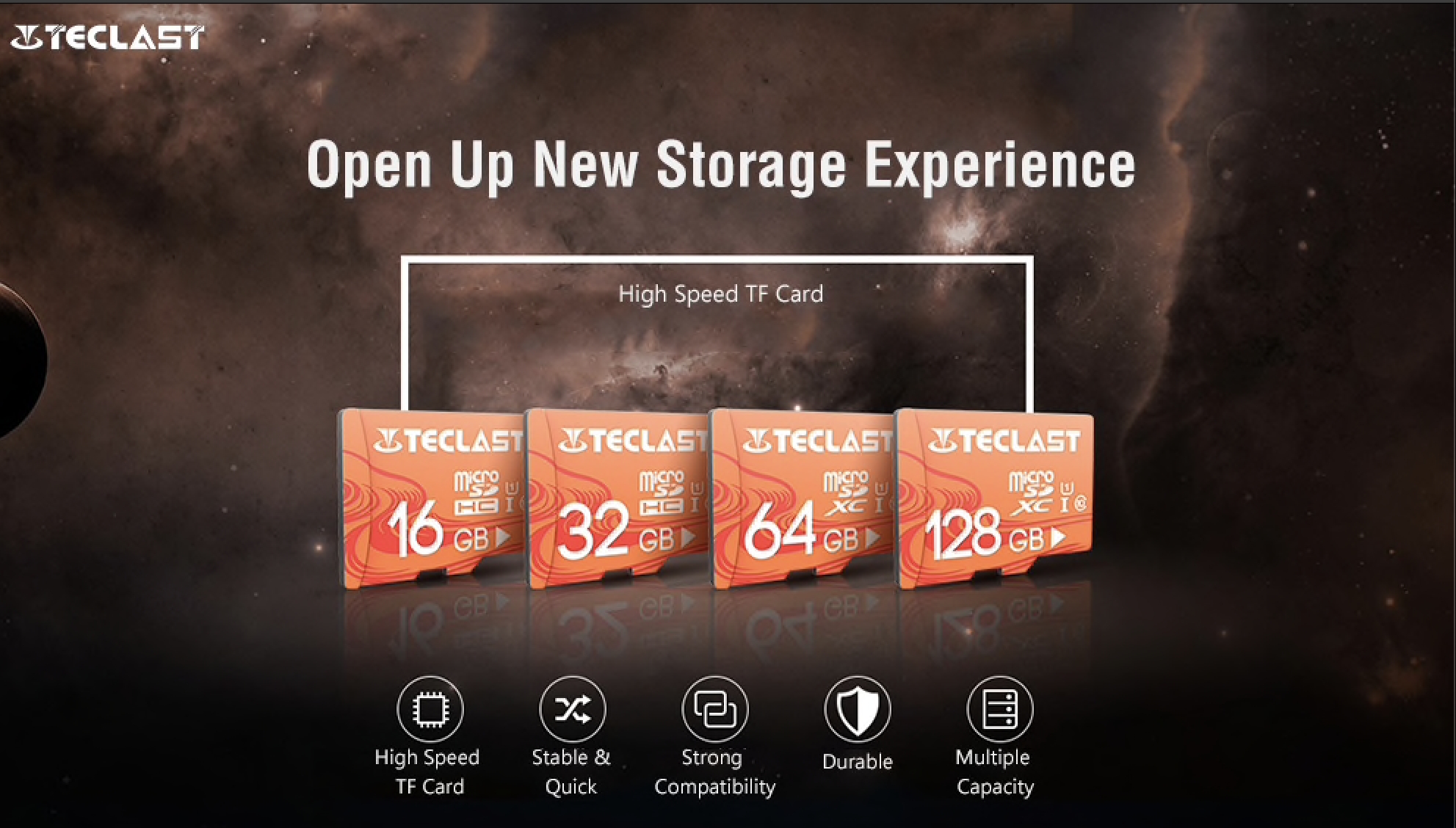 Teclast 128 GB SDXC je v pořadí již třetí generací SD karet. Tato varianta má větší čtecí i zapisovací rychlost. Přesně jde o 90 MB/s při čtení a 50 MB/s při zápisu, jde tedy o třídu 10. Navíc Teclast SDXC karta zvládá operovat v extrémních teplotách od -25° C až do 85° C. Tato 128GB SD karta od Teclastu je dokonale odolná proti rádiovému záření, taktéž je voděodolná a nárazu vzdorná. Když vám tedy spadne na zem, nemusíte se bát, že byste přišli o svoje data. Dokonce ani přítomnost magnetu nepoškodí vaše data.