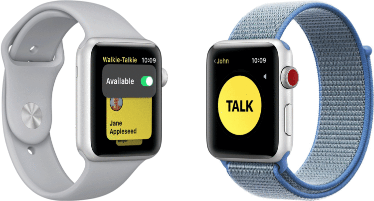 Aplikace Walkie Talkie na chytrých hodinkách s logem nakousnutého jablka umožňuje dvěma uživatelům přijímat audio zprávy, a to prostřednictvím rozhraní „Push to talk“. Právě toto rozhraní má připomínat tlačítka PPT na starších mobilních telefonech.