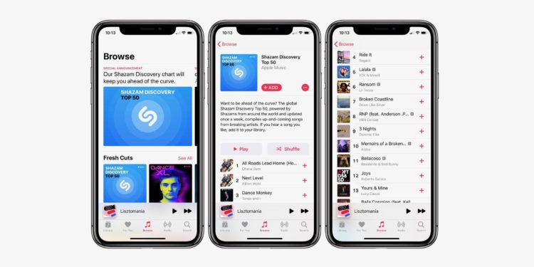 Zbrusu nový seznam skladeb najdete v aplikaci Apple Music, a to na kartě Procházet (Discover). Playlist vám nabídne přesně 50 top skladeb, které byly v rámci Shazam Discovery objeveny. Společnost Apple popisuje Shazam Discovery zhruba takto: