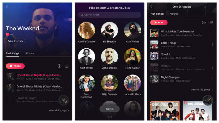 Startovací rozhraní aplikace je velmi podobné jako u Apple Music. Žádá uživatele, aby vybrali své oblíbené interprety a vytvořili si počáteční seznam doporučené hudby. Zde ale podobnost s ostatními službami končí.