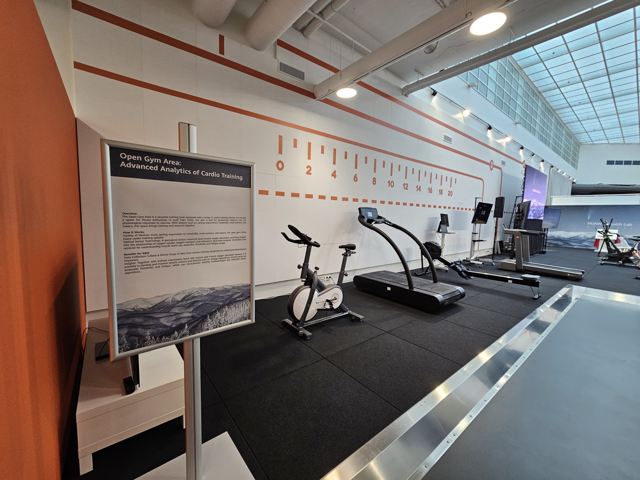 Mezi hlavní zařízení laboratoře patří jeden velký pás určený pro sportovní invalidní vozík, inline běžky nebo například kolo. Dále zde nechybí klasický pá určený pro běžecké aktivity, speciálně vyvinutý plavecký bazén s protiproudem pro simulaci rychlosti plavce, nebo umělý svah pro testování lyžování. Nakonec zde najdeme i nespočet cvičebních strojů, které najdeme v každé lepší posilovně, z nichž jsou některé přímo z dílny Huawei a podporují přímé propojení se smartphonem a chytrými hodinkami díky vlastnímu operačnímu systému HarmonyOS.