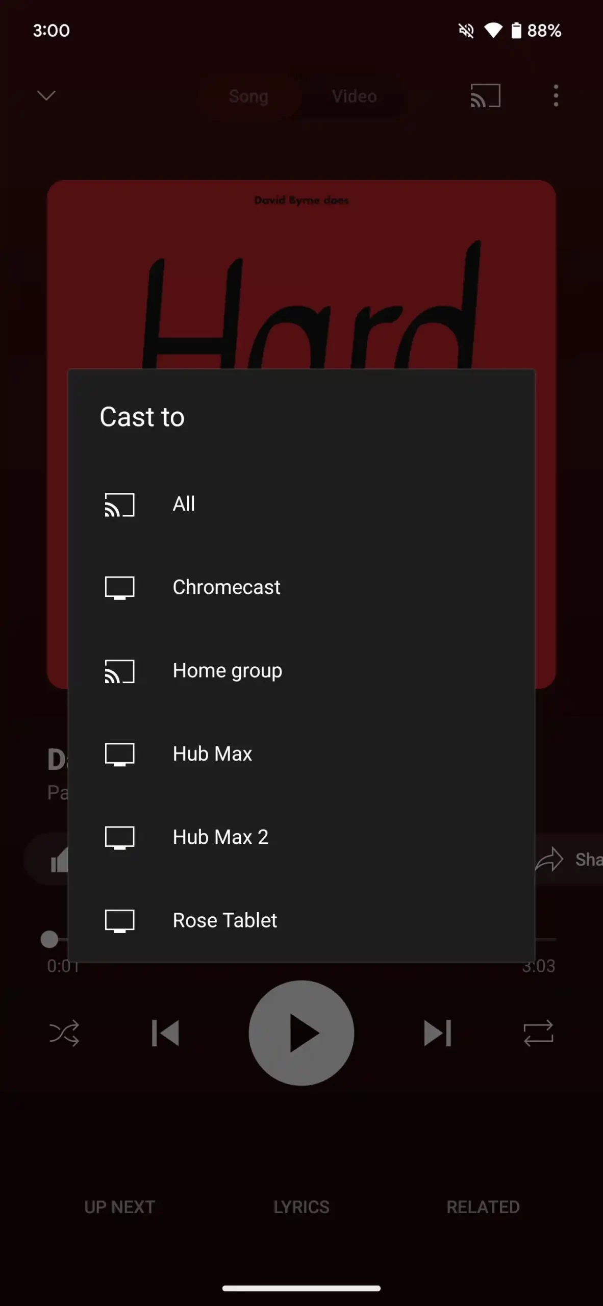 Youtube Music není dokonalou aplikací a stále chybí některé funkce, byť se asi připravují. Co vypadalo ale trochu staře, je samotná nabídka pro casting, tedy odesílání obsahu do podporovaného zařízení, například do chytrého reproduktoru. Při aktivaci se vám standardně zobrazí dialogové okno uprostřed obrazovky, kde si vyberete, kam chcete streamovat. Následně po zahájení přehrávání se nabídne takový mini přehrávač.