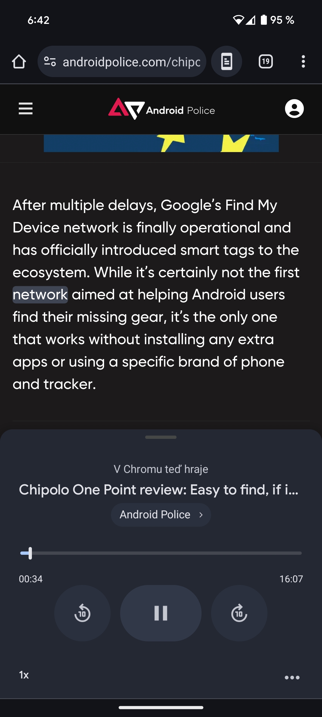 Funkce jako taková se skrývá v nabídce, kde ji naleznete jako Poslechnout si tuto stránku. Ve své podstatě se aktivuje TTS a rozhraní, kde si jde nastavit rychlost přehrávání, , možnost skoku vpřed nebo vzat, pozastavení a také je zde ukazatel postupu. Navíc aplikace zvýrazňuje, co aktuálně čte. K dispozici je i mini přehrávač, přičemž funkce jako taková je k dispozici i pro Chrome Custom Tabs a je možné docílit přehrávání na pozadí, byť se nám to na redakčním mobilu nepodařilo.