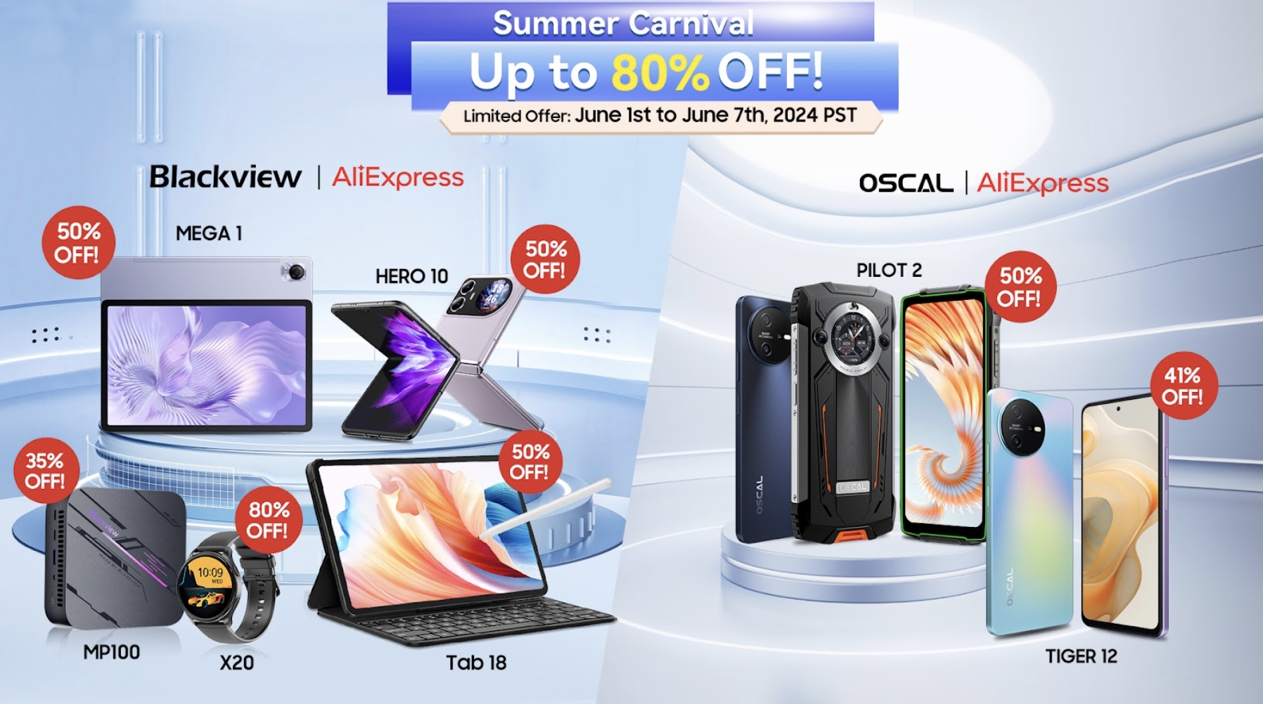 S blížícím se létem přichází AliExpress s dalším kolem výprodejů, které proběhne od 1. do 7. června 2024. Přední značka chytrých zařízení Blackview se spojila se svou podznačkou OSCAL a společně připravily řadu lákavých nabídek.