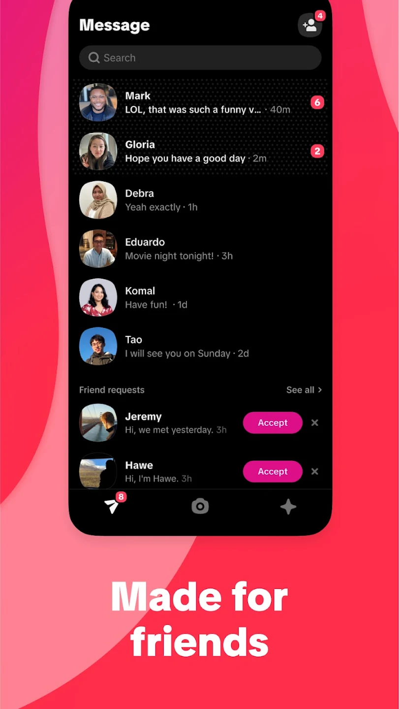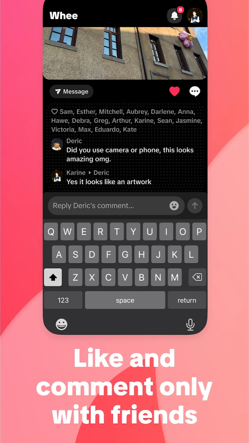 Whee je nová sociální aplikace vytvořená, aby vás udržela ve spojení se svými blízkými přáteli prostřednictvím spontánních životních okamžiků. Zachyťte a sdílejte skutečné fotografie, které mohou vidět pouze vaši přátelé, což vám umožní být svým nejautentičtějším já. Whee je nejlepší místo, kde mohou blízcí přátelé sdílet životní okamžiky.