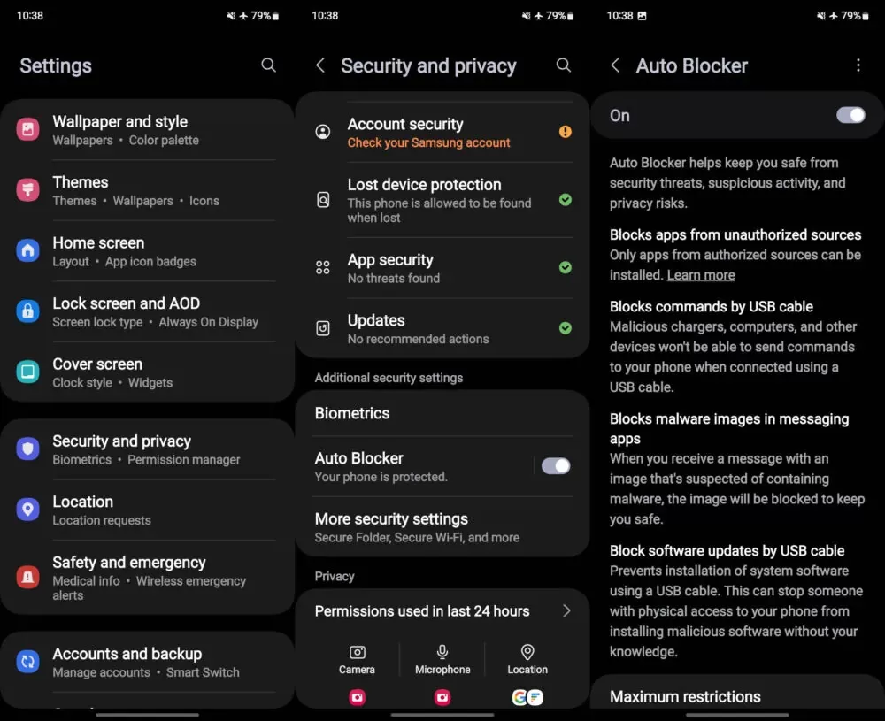 Samsung se rozhodl jít dál. Už před nějakou dobou představil funkci Auto Blocker, ale ta byla v základu neaktivní a uživatel ji muset spustit sám. Přidává totiž další ochranu navíc a blokuje jakýkoliv pokus o instalaci jakékoliv aplikace nepocházející z Obchodu Play nebo Galaxy Store.