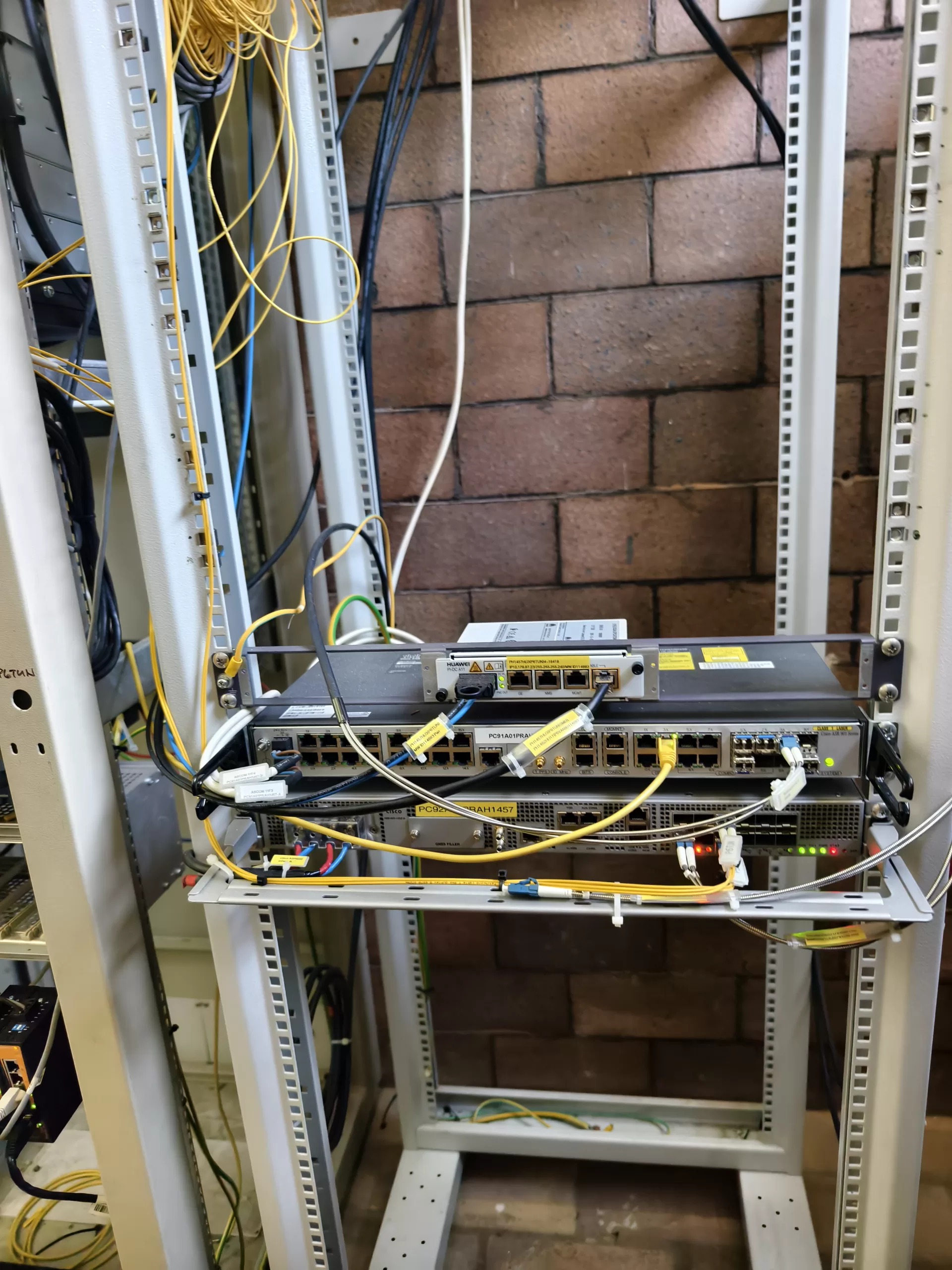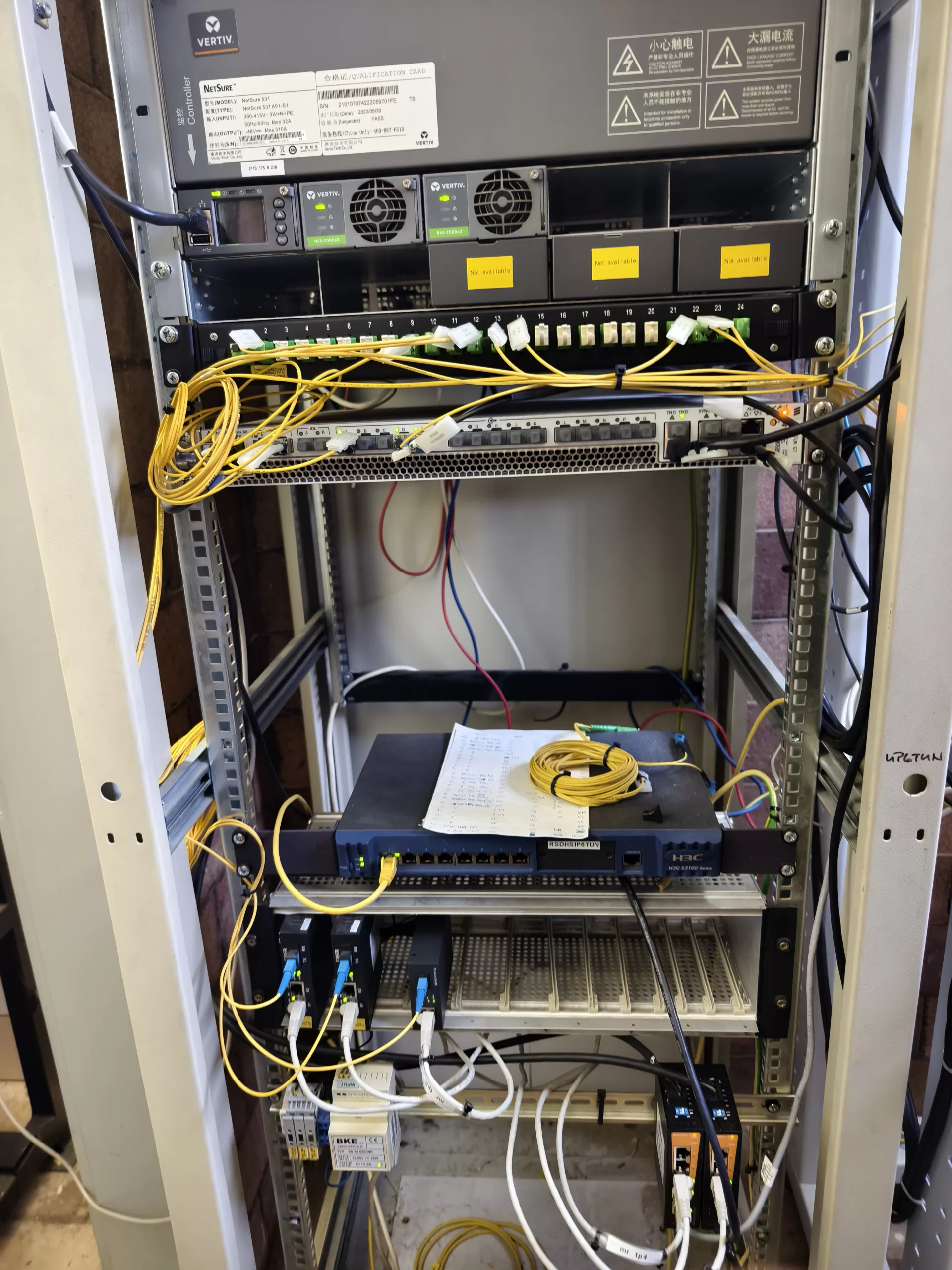 Baseband komunikuje s digi buňkami přes optické kabely s impozantními parametry. Propustnost dosahuje až 25 Gb/s, přičemž každý kabel obsahuje 24 optických vláken. Celkem je použito 9 takových kabelů. Pro srovnání, na pražském okruhu je nejdelší optický kabel dlouhý 6 km, zatímco v tunelech dosahuje délky 3 km. Abychom se dostali dolů k digi buňkám, museli jsme sejít desítky pater po různých schodech, sjet 16 pater výtahem, sejít a vyjít několik dalších pater a následně slézt 25 metrů dolů po žebřících. Cestou jsme měli možnost nahlédnout na další zajímavosti v krytu civilní ochrany. Samotná rozvodná stanice se nachází asi 100 metrů pod povrchem.