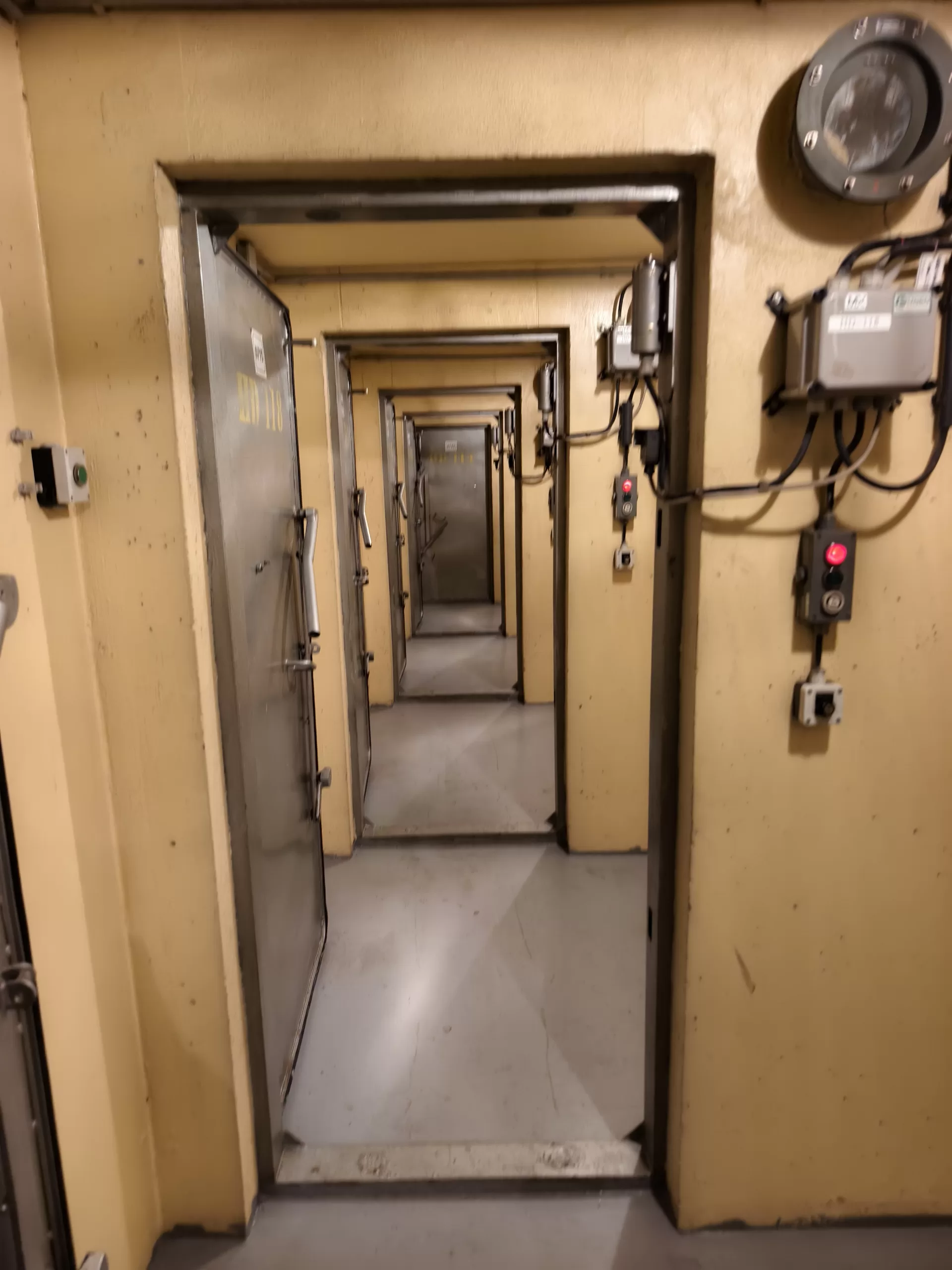 Ukázka spletitosti chodeb, dlouhých prostor pro umístění obyvatelstva, složité mechanismy pro otevírání dveří, těžké protiatomové dveře a dekontaminační místnost. Následuje ukázka žebříků, které jsou jedinou cestou k digi buňkám. Ukázka vedení kabeláže po chodbách a další hermeticky uzavřené těžké dveře.