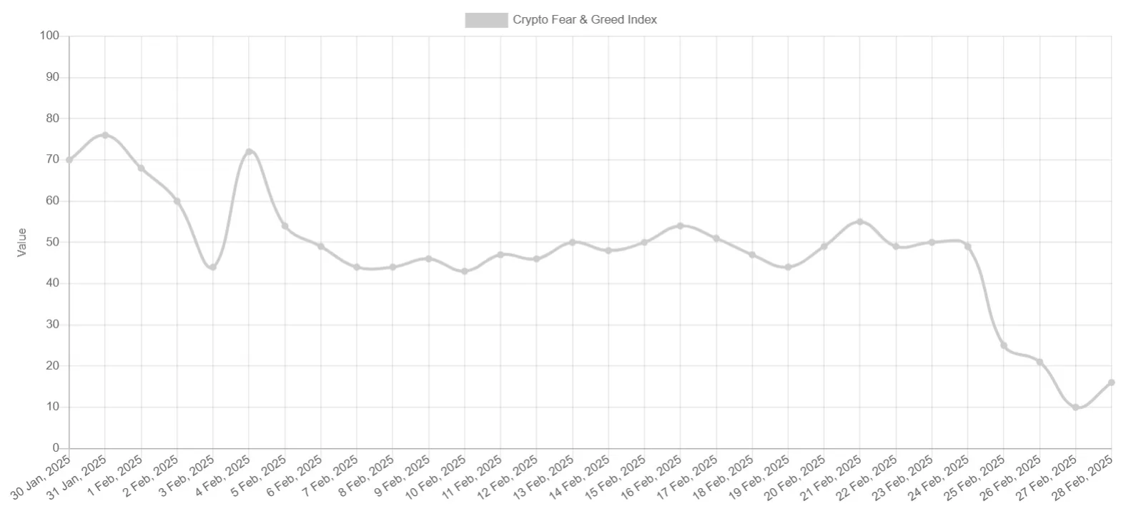 Na kryptoměnovém trhu se index Fear & Greed propadl na hodnotu 10, neboli Extreme Fear – což je v ostrém kontrastu k úrovním zaznamenaným na začátku února.