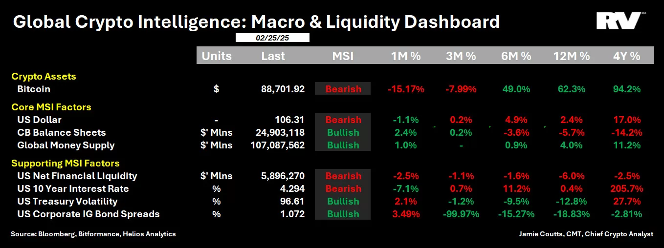 Jamie Coutts, kryptoanalytik ze společnosti Realvision, také připojil svůj názor na to, jak expanze likvidity ovlivňuje cenu bitcoinu. „Dva ze tří klíčových ukazatelů (v rámci globální peněžní zásoby a rozvahy centrálních bank) se při současném propadu trhů změnily na býčí. Tento stav byl historicky pro bitcoin vždy příznivý. Dolar je další dílek domina, a jejich souhra je král.“