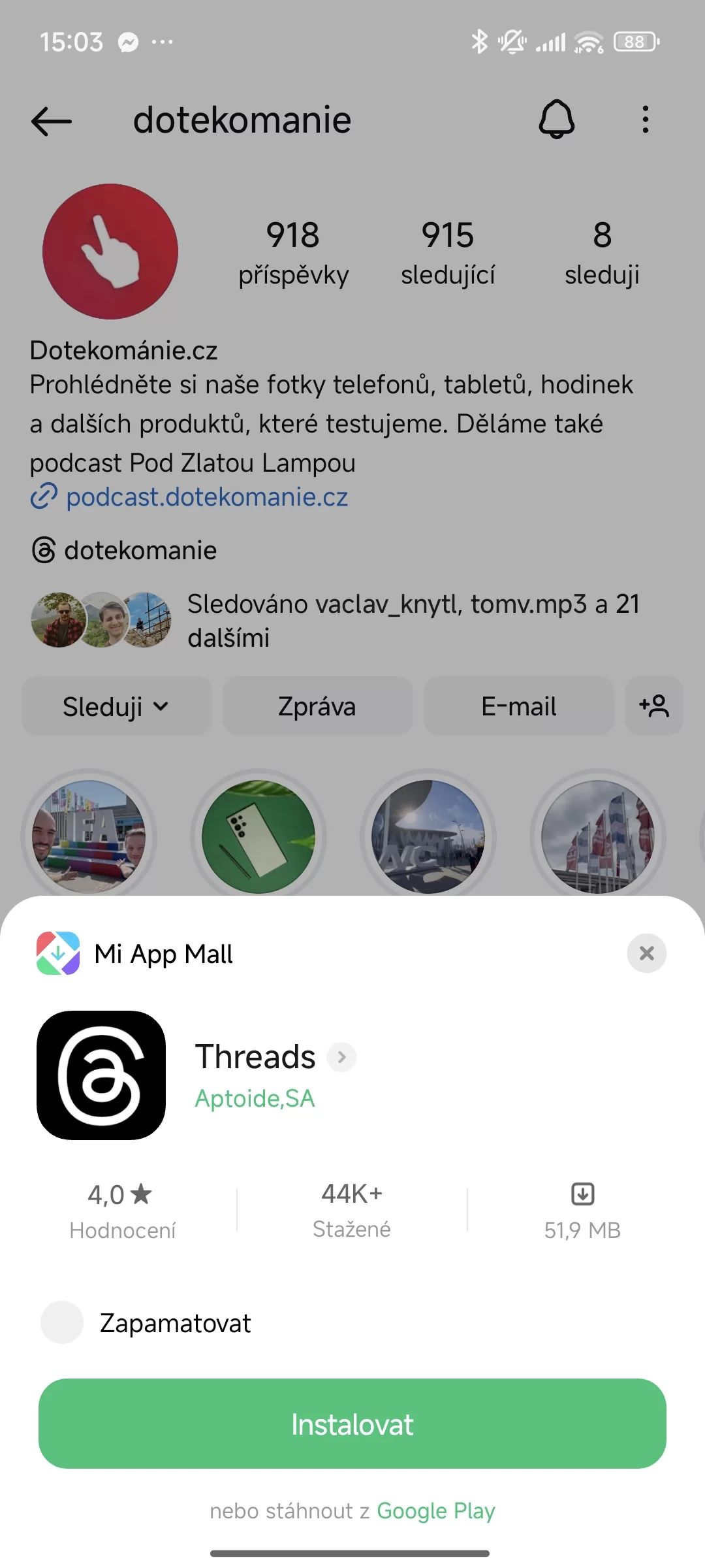Jediná nevýhoda je velké, opravdu velké množství předinstalovaných aplikací a her. Chvíli to tak potrvá než se všeho balastu zbavíte a vypnete otravné notifikace vestavěných aplikací. Dost mě také překvapil vestavěný Xiaomi App Mall. Ten při kliknutí v Instagramu na odkaz na Threads převzal roli Google Play a chtěl mi nainstalovat tuto aplikaci z neoficiálního zdroje. To není dobré. Tento neoficiální App Mall bohužel nelze odinstalovat. Vždy doporučuji instalovat aplikace jen z oficiálního zdroje, ideálně přímo z Google Play.
