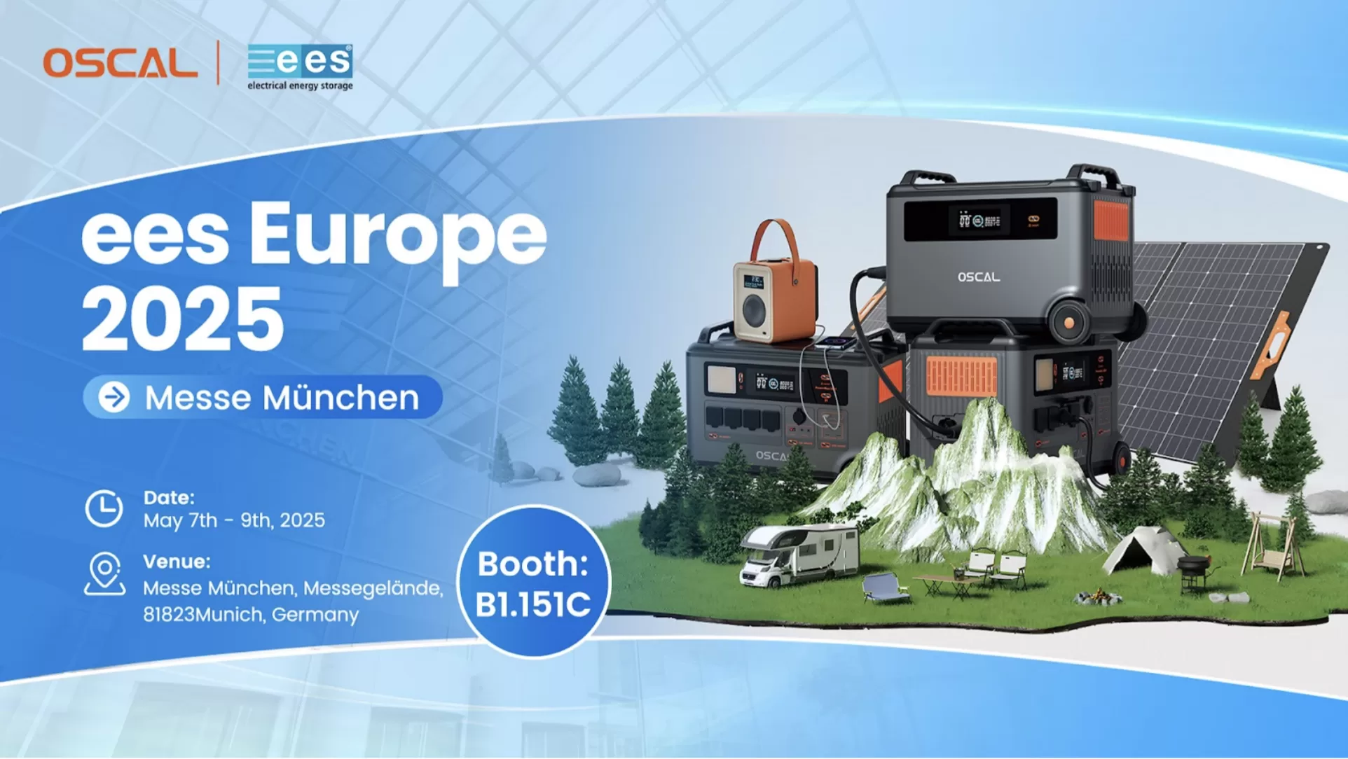 Na prestižním veletrhu ees Europe 2025, který se koná v Mnichově (hala B1, stánek 151C), odhalí značka OSCAL své nejnovější inovace v oblasti solárních a záložních energetických systémů. Vlajkovým produktem je PowerMax 2400 Pro – první přenosná, stohovatelná powerbanka s integrovaným balkonovým solárním systémem a vestavěnými reproduktory.