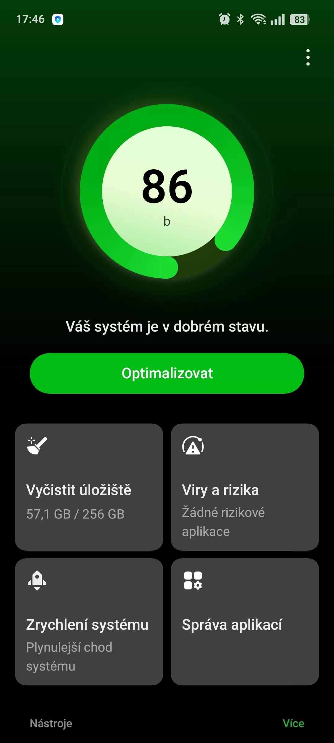 Neříkám, že to musí být hned nějaké mínus, jen to trochu nepotěší při prvním nastavování mobilu. Při používání se pak mohou takové funkce hodit, pokud ušetří energii. Realme 14 5G má navíc i speciální aplikaci na postupnou optimalizaci běhu systému. Sem tam se ozve a nabídne čistění, jen tedy já raději nechávám systém dělat vše posvém. Neustále mazání aplikací stejně nemusí mít kladný efekt.