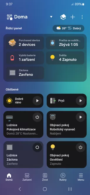 Přehledná aplikace SmartThings tedy slouží jako centrální hub, který propojuje kompatibilní zařízení pomocí různých komunikačních protokolů jako jsou Wi-Fi, Zigbee, Z-Wave, Matter, Bluetooth nebo Thread. Uživatelské rozhraní mobilní aplikace SmartThings tak poslouží jako univerzální ovládací centrum celé chytré domácnosti.