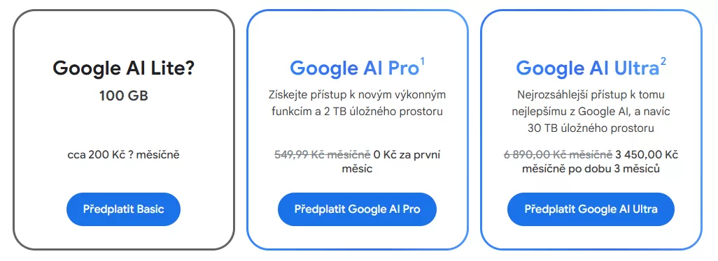 Vzhledem k tomu, že Basic přijde na necelých 60 Kč měsíčně, tak Google AI Lite by se mohlo nabízet s cenou kolem 200 Kč. Je to ale jen náš odhad a na nějaké detaily si budeme muset počkat.