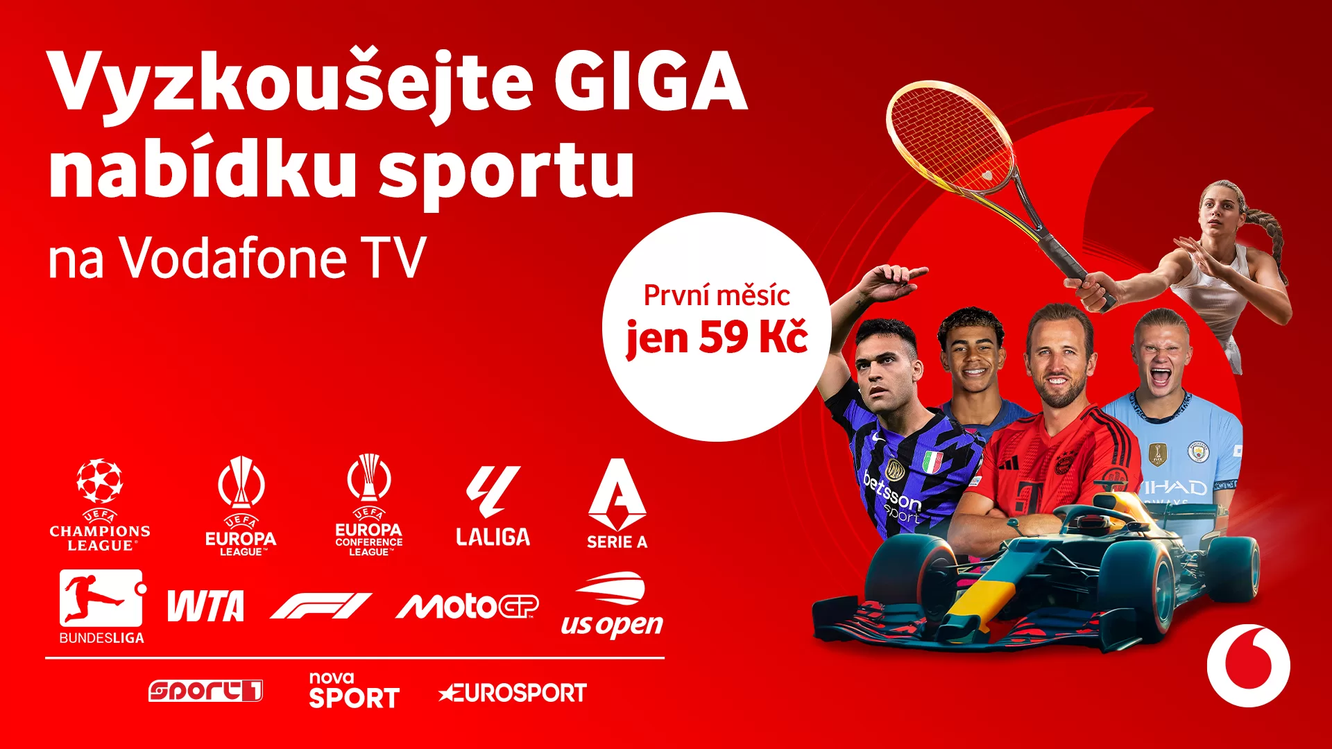 Vodafone myslí na všechny fanoušky sportovních klání, a proto si pro ně připravil speciální službu Vodafone TV Lite & Sport. Novinka přináší několik desítek základních programů, ale zajímavá je především svou bohatou nabídkou sportovních kanálů. Mezi nimi diváci najdou všechny programy Nova Sport, Sport 1 a 2, Eurosport 1 a 2 a mnohé další se všemi důležitými sportovními přenosy. Fanoušci se tak mohou těšit na Ligu mistrů UEFA, Evropskou ligu UEFA, Konferenční ligu UEFA, německou Bundesligu, španělskou LaLigu a italskou Serie A, přenosy Formule 1, MotoGP, UFC, tenisové Grand Slamy a výběr turnajů z WTA, dále NFL, NHL, NBA, cyklistiku a zimní sporty.