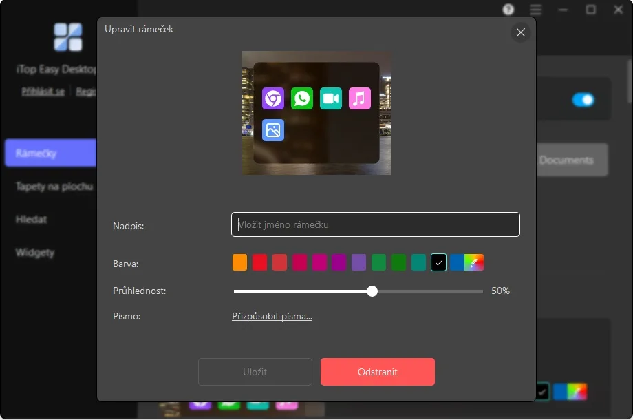 Už jen tato funkce samotná dá vaší ploše mnohem větší organizaci. Hodně se mi líbila i možnost mít tyto rámečky sbalené (srolované), přičemž se automaticky rozbalí až ve chvíli, kdy na ně najedete myší. Možností dalšího přizpůsobení (grafického i funkčního) je opravdu hodně, a doporučuji si postupně vyzkoušet všechny možnosti, abyste objevili všechna kouzla, která iTop Easy Desktop umí.
