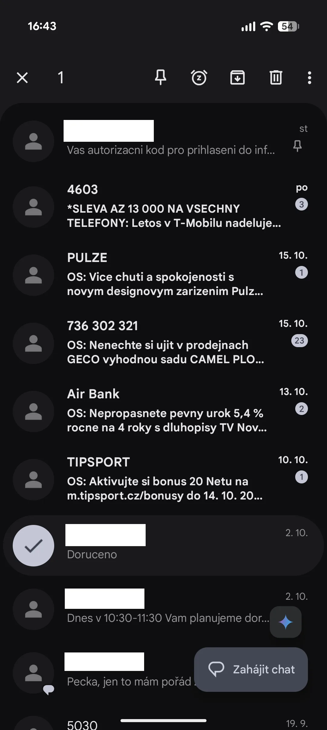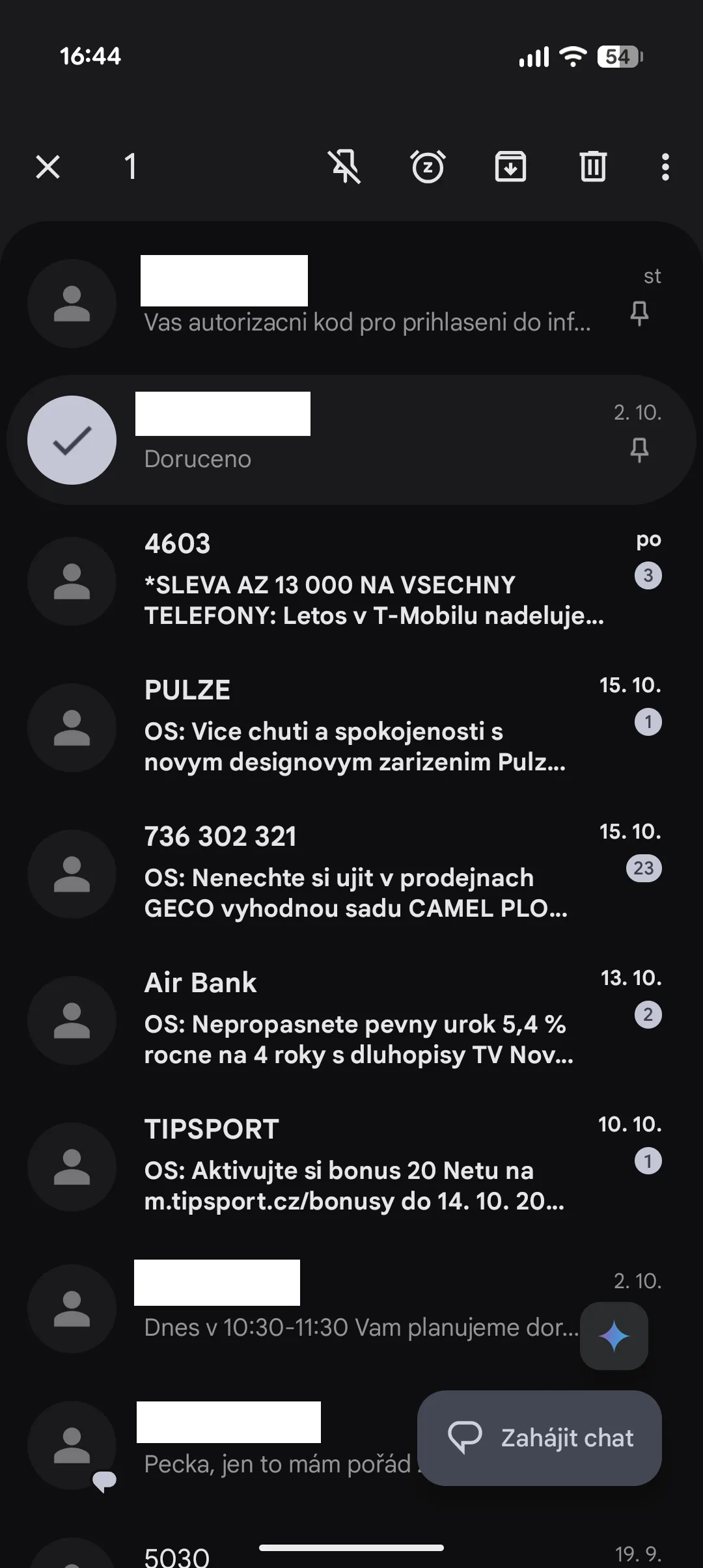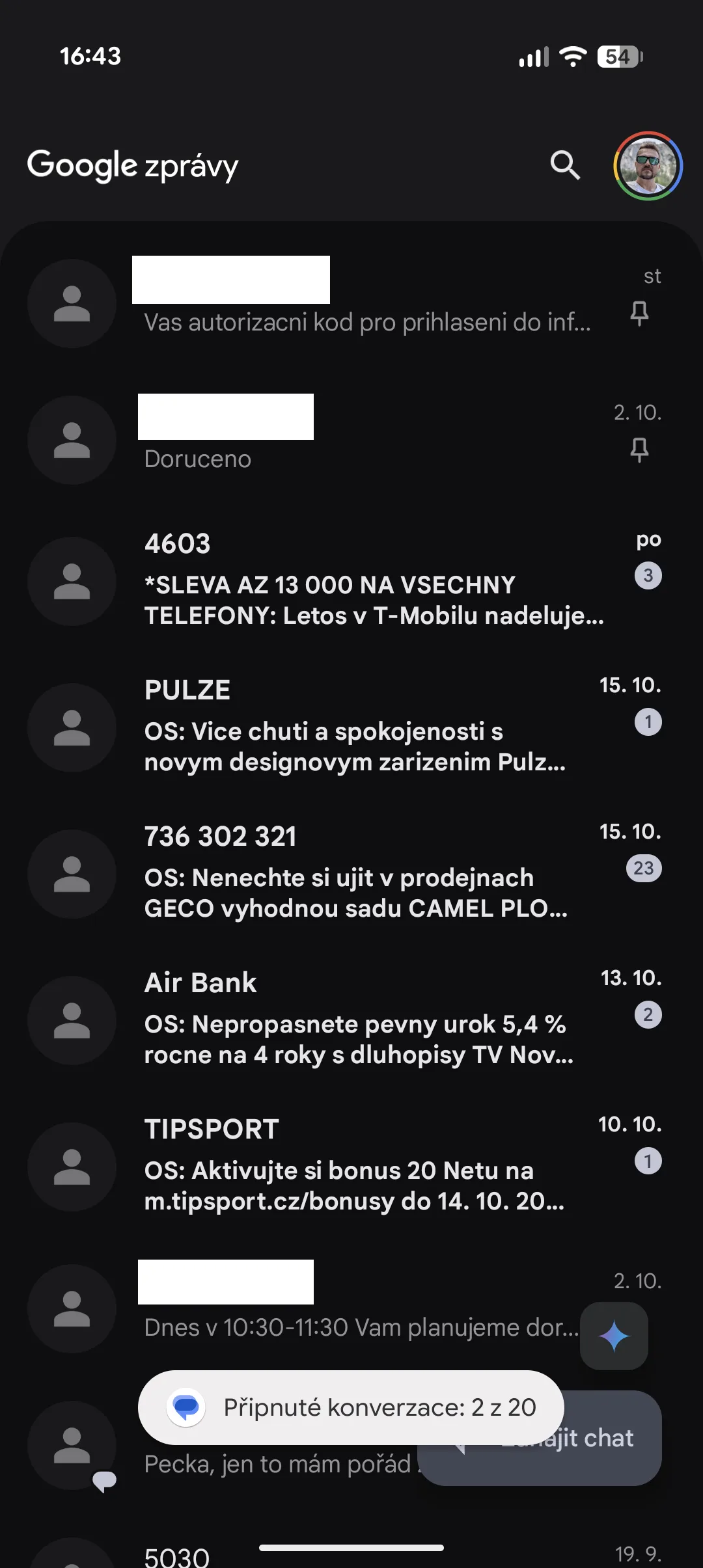 U aplikace Zprávy ve verzi 8.3.026 se začíná objevovat funkce, která dovoluje připnutí konverzace do horní části seznamu. Konkrétně si tak můžete připnout až tři. Postup je velmi jednoduchý. Stačí prstem podržet na konkrétní konverzaci, přičemž se v horní části objeví funkční tlačítka.