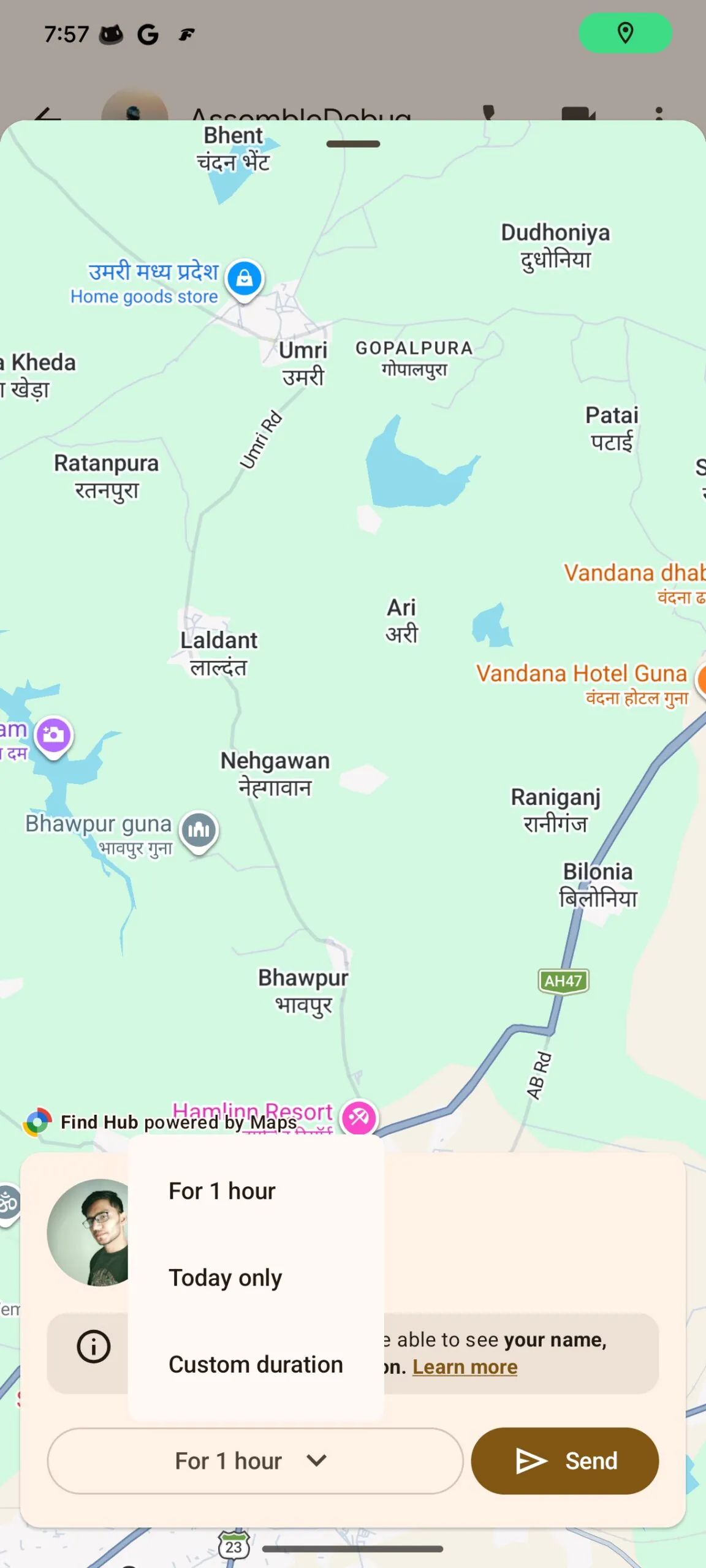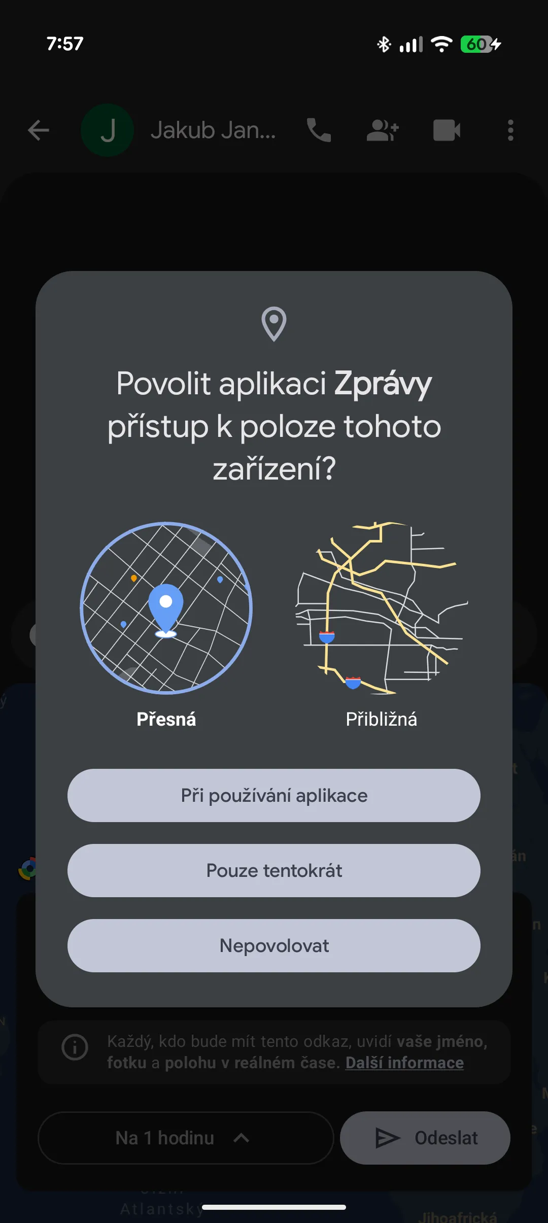 Samotné nastavení vlastního času je ve dvou variantách. V základu se vám nabízí nastavení přímo, jak dlouho se bude sdílet, ale je zde i možnost sdílení do konkrétního času. Při odeslání se pak přímo v chatu zobrazuje v miniatuře aktuální poloha a ještě je zde indikace v horní části. Při rozkliknutí se nabídne větší zobrazení, ale dole je tlačítko pro ukončení sdílení a také možnost zkopírování odkazu pro sdílení této informace na dalších platformách.