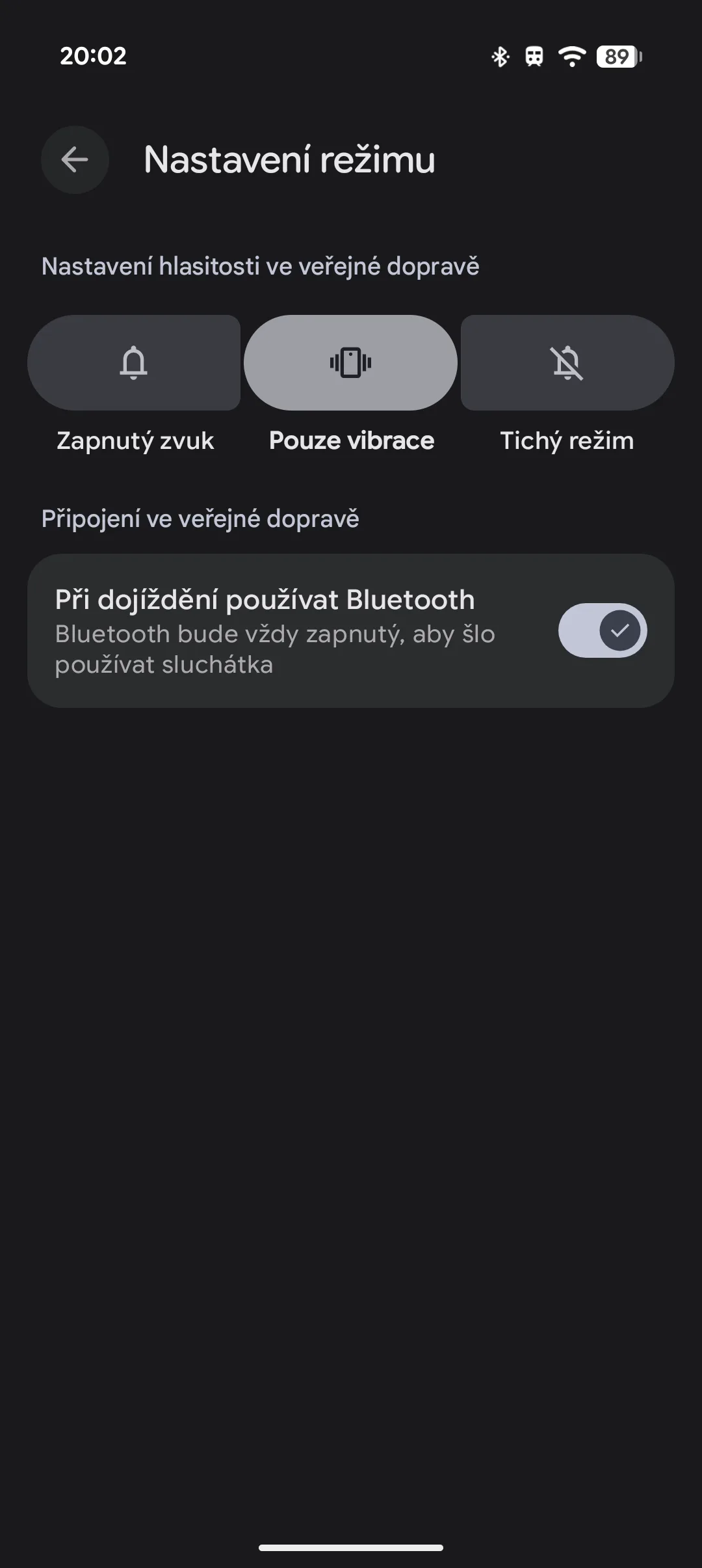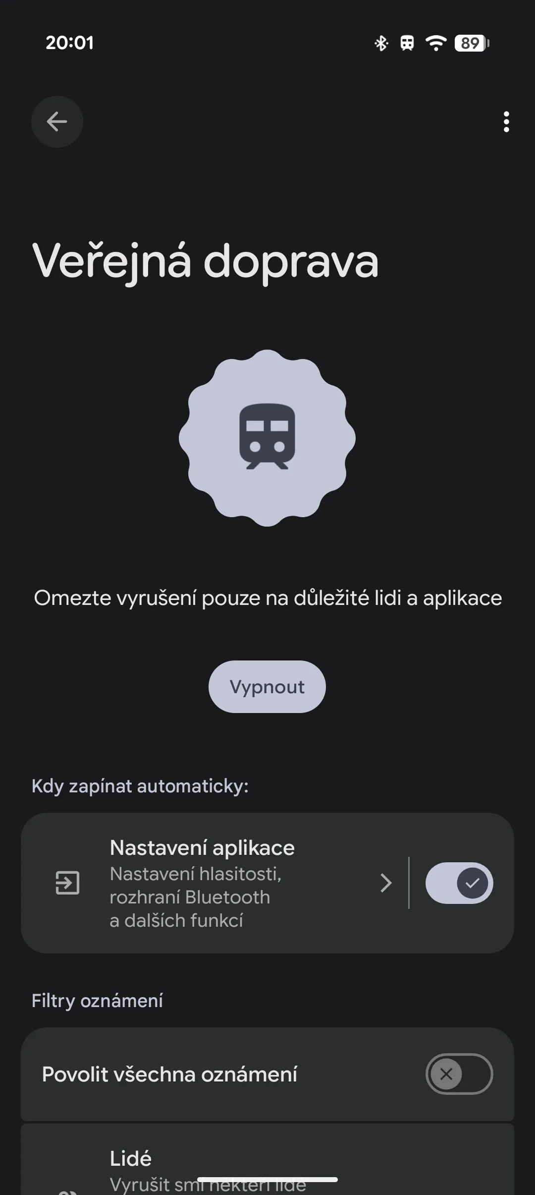 Tato novinka se týká nového režimu, který se nachází mezi těmi stávajícími jako Nerušit, Noční klid a další. Jmenuje se jednoduše Veřejná doprava. Ten nabízí relativně standardní nastavení, kde si můžete zvolit aplikace, které mohou ve své podstatě rušit. Součástí je i nastavení pro notifikace, kde si opět lze zvolit důležité osoby, aplikace a zvuky.