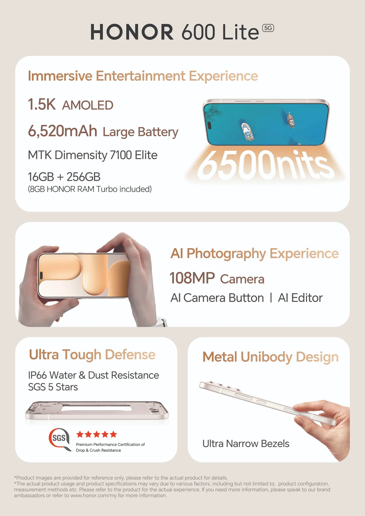 Honor 600 Lite údajně získá 6,6palcový AMOLED displej s Full HD+ rozlišením, 120Hz obnovovací frekvencí a maximálním jasem 6500 nitů. Konstrukci složenou ze skleněných zad nebo kovového rámečku vyplní čipset Dimensity 7100 od MediaTeku. Po něm následuje 8GB operační paměť RAM po boku 256GB interního úložiště.